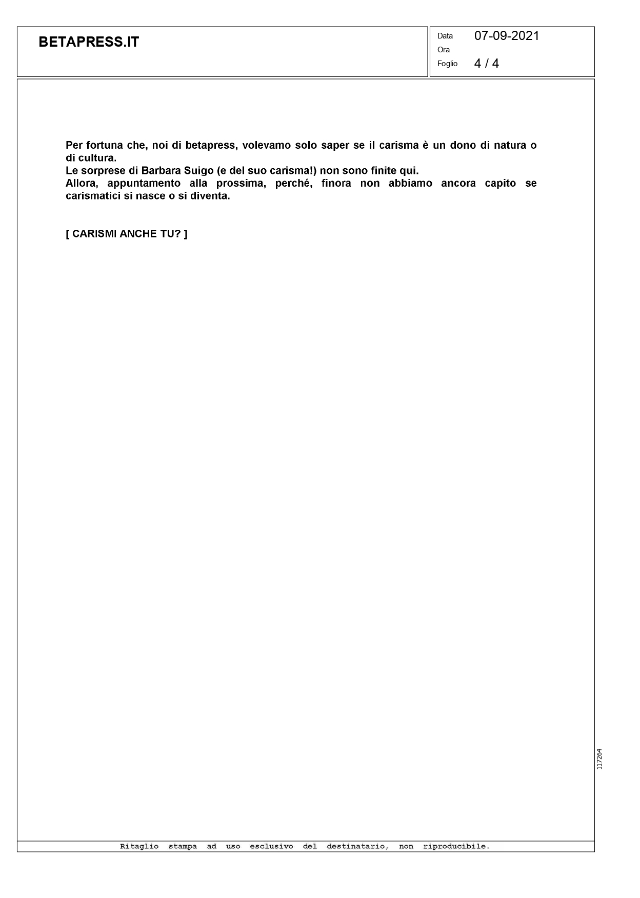 Press, HIGHLIGHT, Rassegna stampa, News, Social responsibility Betapress.it – Carismi anche tu? Pubblicato il Settembre 8, 2021 da useradmin 08 Set Leggi l’articolo sul sito useradmin Start-up HUFFINGTONPOST.IT – “La settimana di 4 giorni è necessaria. Il tempo non è denaro”. Anche USA e Spagna ci pensano”.