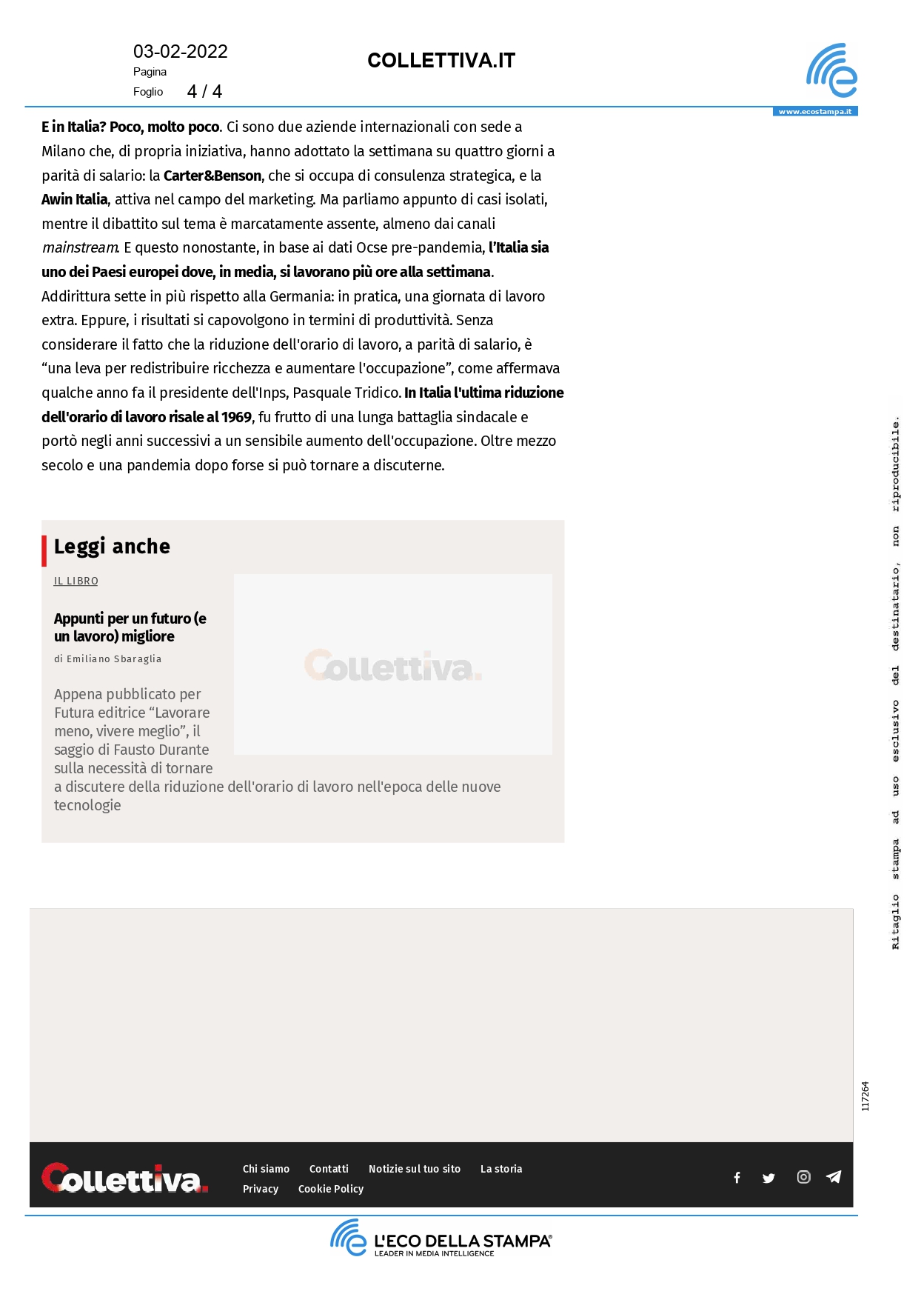 Press, Rassegna stampa, News, Social responsibility Collettiva.it – Se quattro giorni vi sembran pochi Pubblicato il Febbraio 3, 2022 da useradmin 03 Feb useradmin politicamentecorretto.com – 4 su 5 – al via il test in UK – un’analisi di Maddalena Boffoli Informazione.it – La certificazione Gender Equality di Winning Women Institute ad altre 5 aziende: Banca Ifis, Bip, Bosch, Michelin, Sisal