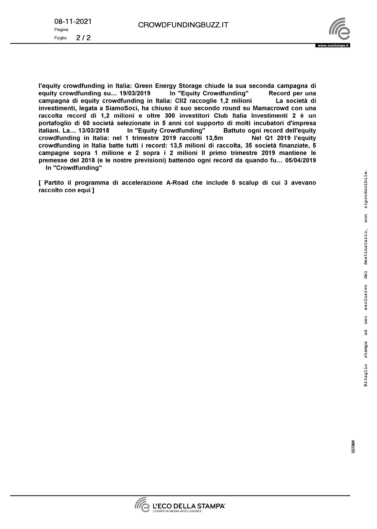 Press, HIGHLIGHT, Rassegna stampa, News crowdfundingbuzz.it – Partito il programma di accelerazione a-road che include 5 scalup di cui 3 avevano raccolto con Equity Crowdfunding Pubblicato il Novembre 8, 2021 da useradmin 08 Nov useradmin ilfoglio.it – Startup: parte A-Road con primo batch di accelerazione e raccolta fondi Adnkronos.com – Piccole startup crescono, ecco come fa A-Road