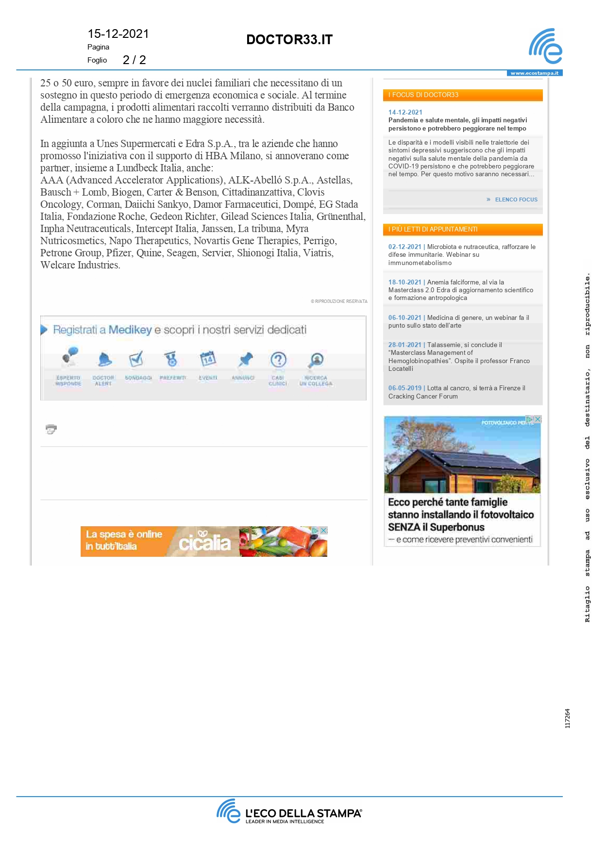 Press, HIGHLIGHT, Rassegna stampa, News, Social responsibility, Charity Doctor33 – Torna “United4ourFuture” iniziativa online in favore di Banco Alimentare per Natale all’insegna della solidarietà Pubblicato il Dicembre 15, 2021 da useradmin 15 Dic useradmin Credere nel futuro, insieme ADVFN – Imprese: al via 2* batch di A-Road, acceleratore per scale-up