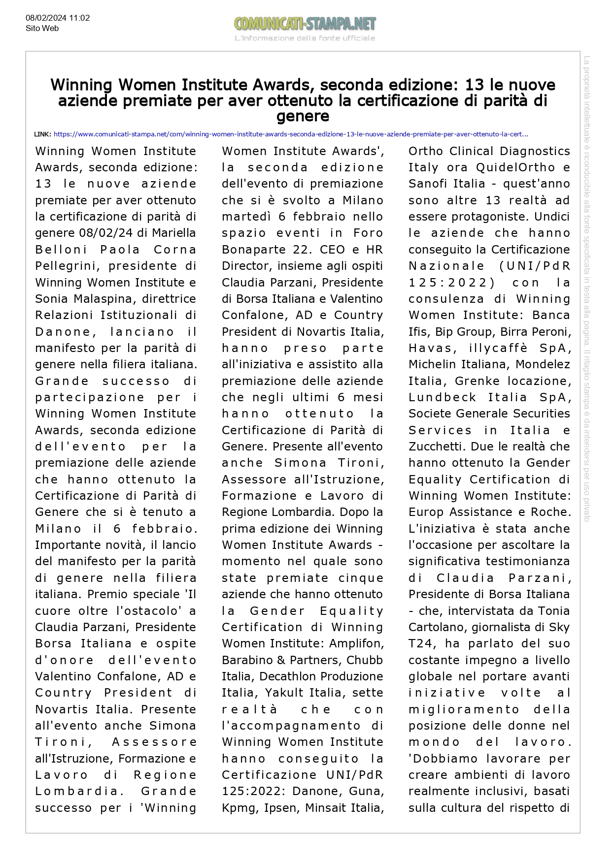 Uncategorized, HIGHLIGHT, Press review, Social responsibility, News comunicati-stampa.net, Winning Women Institute Awards, seconda edizione: 13 le nuove aziende premiate per aver ottenuto la certificazione di parità di genere Posted on February 8, 2024February 12, 2024 by useradmin 08 Feb useradmin requadro.com – Al via la Real estate ski cup organizzata da Progetto Cmr Progetto CMR organizza il 16 marzo la seconda edizione della Real Estate Ski Cup – Trofeo Edoardo Camardella a La Thuile, Val d’ Aosta
