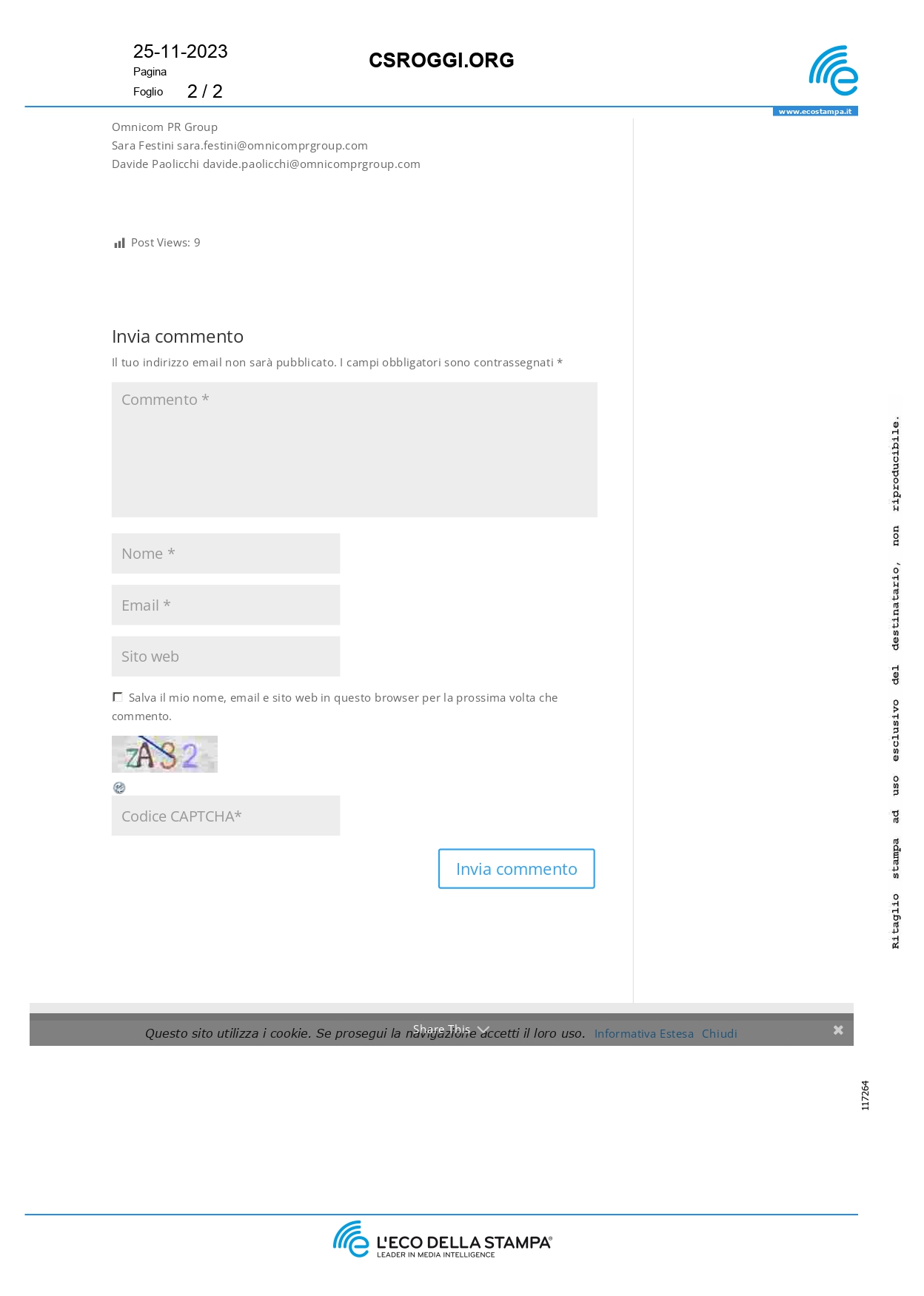 Uncategorized, HIGHLIGHT, Press review, Social responsibility, News CSR Oggi – Premio Valeria Solesin 2023, settima edizione Posted on November 27, 2023 by useradmin 27 Nov useradmin IMPRESEDILINEWS.IT – L’imprenditoria femminile fa fatica ad emergere e affermarsi in Europa Domani – Lavoro, tutti a casa il venerdì Adesso l’Italia copia l’Europa