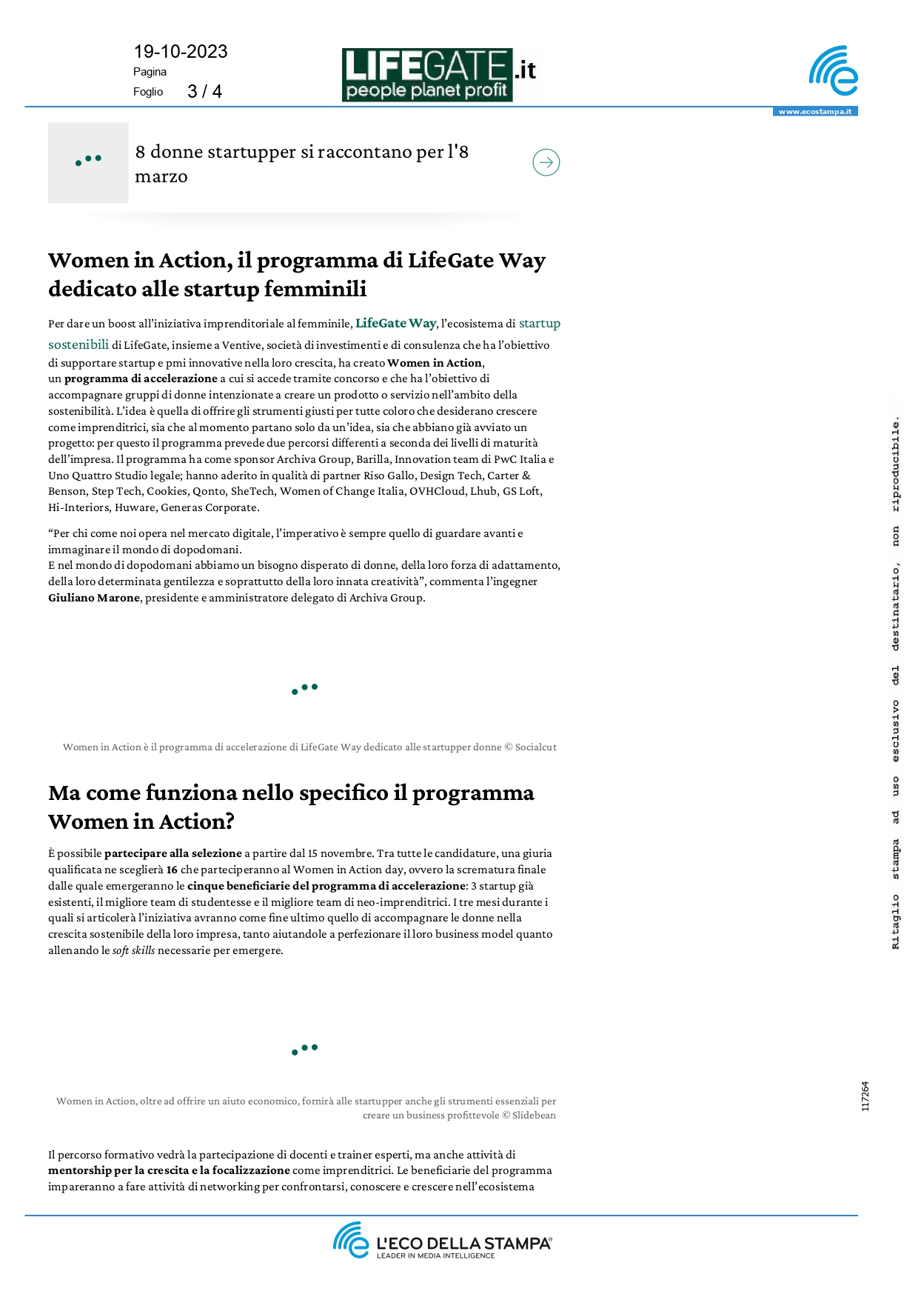Uncategorized, HIGHLIGHT, Press review, Social responsibility, News Women in Action e LifeGate Way: un boost per l’imprenditoria femminile Posted on October 26, 2023 by useradmin 26 Oct useradmin Business wasn’t built in a day – Intervista a Stefano Lo Priore, CEO di Hyris la Voce – Le startup ‘rosa’ non decollano
