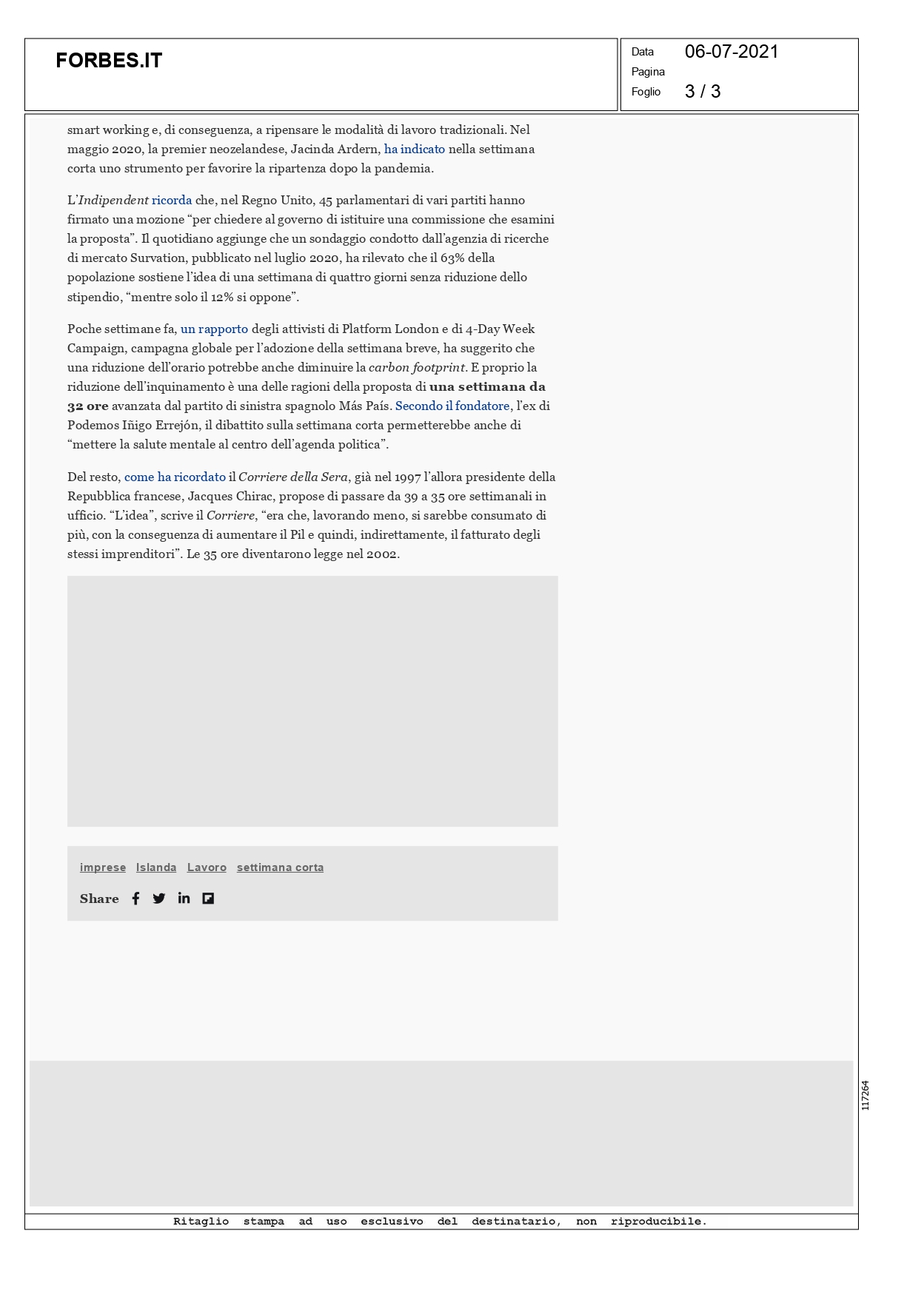 Press, HIGHLIGHT, Rassegna stampa, Social responsibility Forbes.it – L’Islanda ha provato la settimana di lavoro da quattro giorni. “Ed è stata un successo straordinario” Pubblicato il Luglio 8, 2021 da useradmin 08 Lug Leggi l’articolo sul sito useradmin Infografica: crescita ricerca figure IT e Digital 2020 vs 2019 Leggendoquaela.it – L’Islanda ha provato la settimana di lavoro da quattro giorni. “Ed è stata un successo straordinario”
