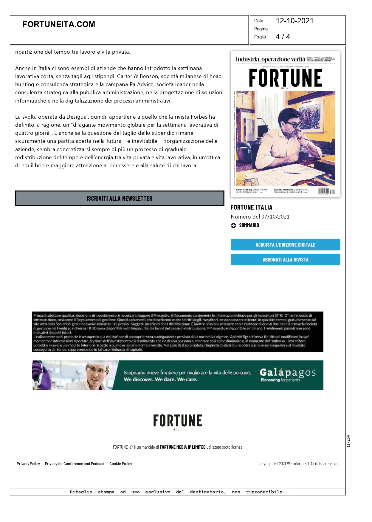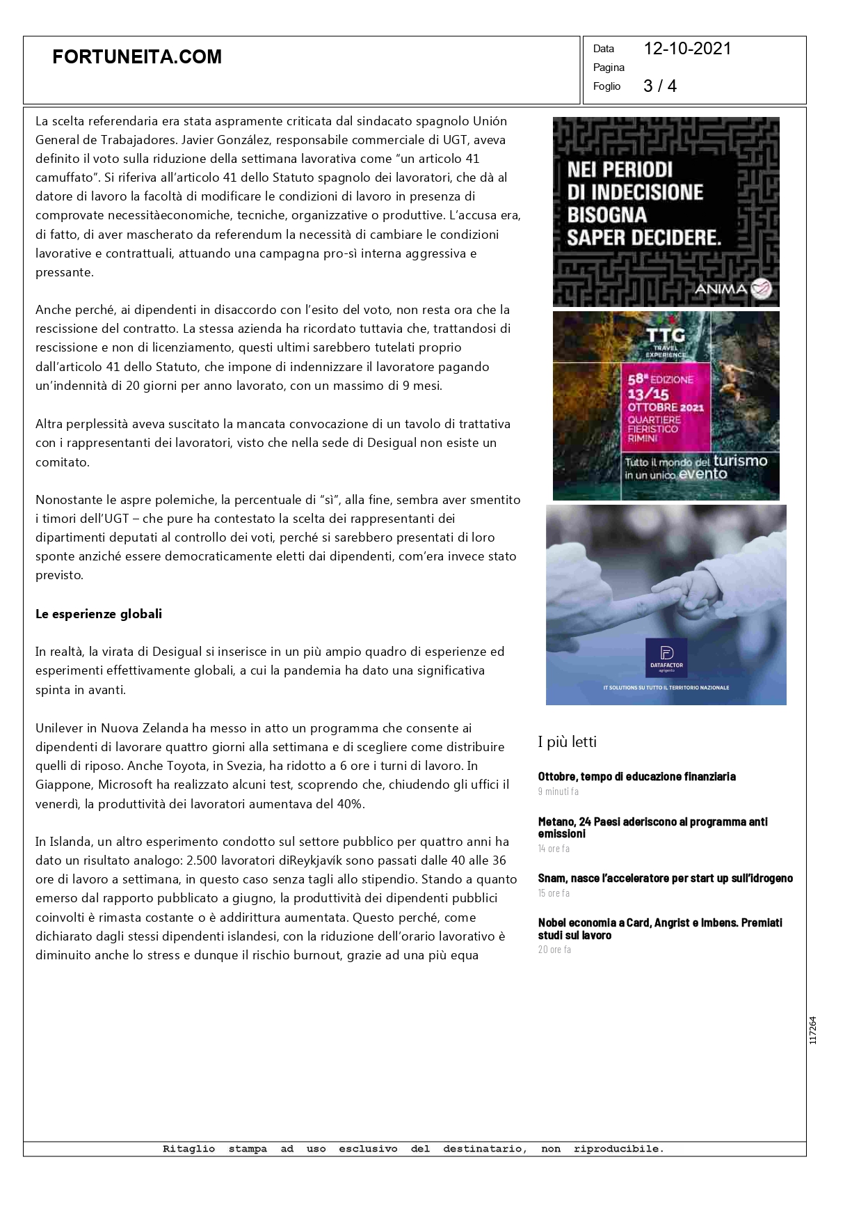 Press, HIGHLIGHT, Rassegna stampa, News, Social responsibility Fortuneita.com – La svolta di Desigual, al lavoro 4 giorni Pubblicato il Ottobre 12, 2021Ottobre 12, 2021 da useradmin 12 Ott Leggi l’articolo sul sito useradmin Ilgiornaledivicenza.it – Smart working: funziona E uno su 8 lo vuole ancora Avvenire – La PA Advice di Napoli ha scelto la flessibilità