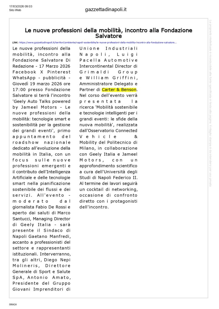 gazzettadinapoli.it – Le nuove professioni della mobilità, incontro alla Fondazione Salvatore Copia
