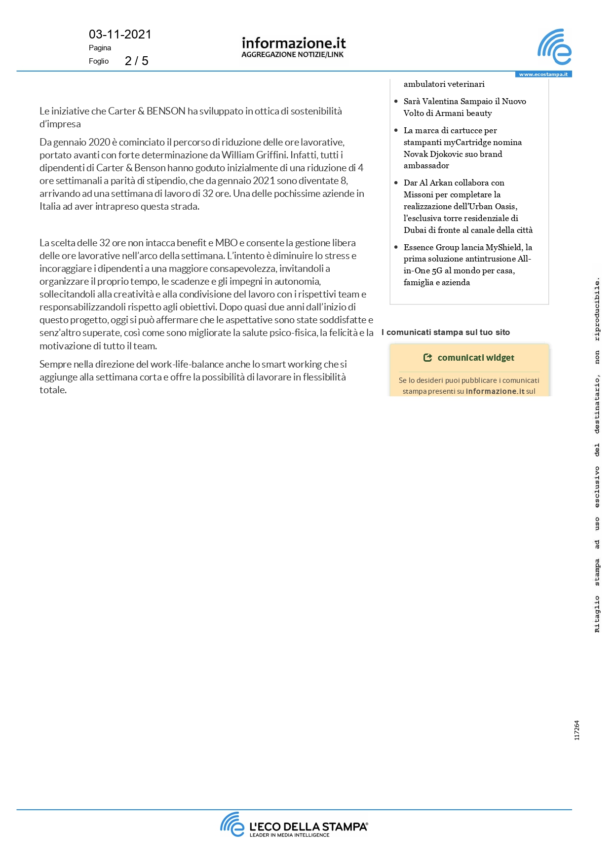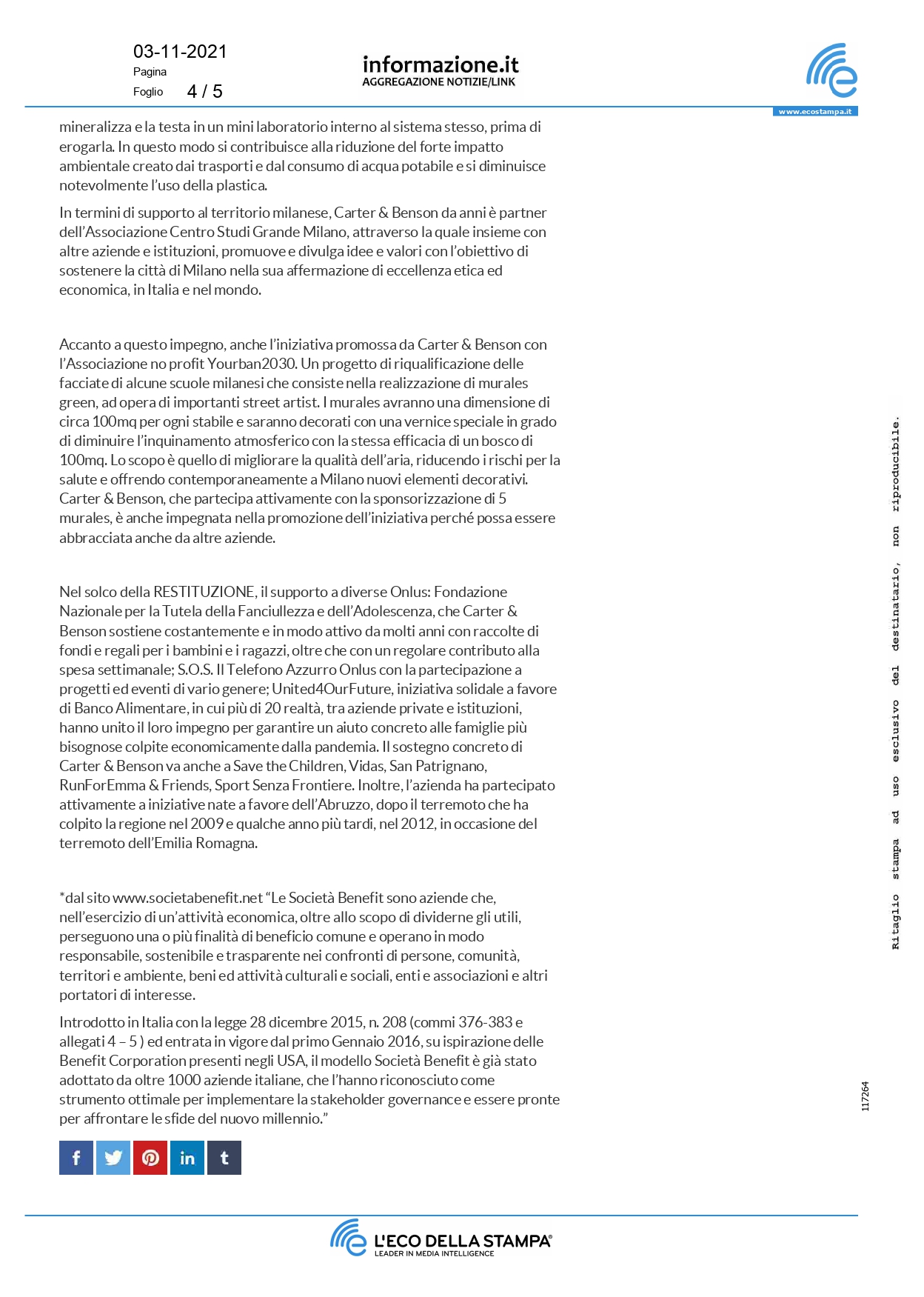 Press, HIGHLIGHT, Rassegna stampa, News, Social responsibility Informazione.it – Carter & Benson da ottobre è Società Benefit Pubblicato il Novembre 4, 2021Novembre 4, 2021 da useradmin 04 Nov useradmin Comunicatistampagratis.it – Carter & Benson da ottobre è Società Benefit Comunicatistampa.net – Carter & Benson da ottobre è Società Benefit