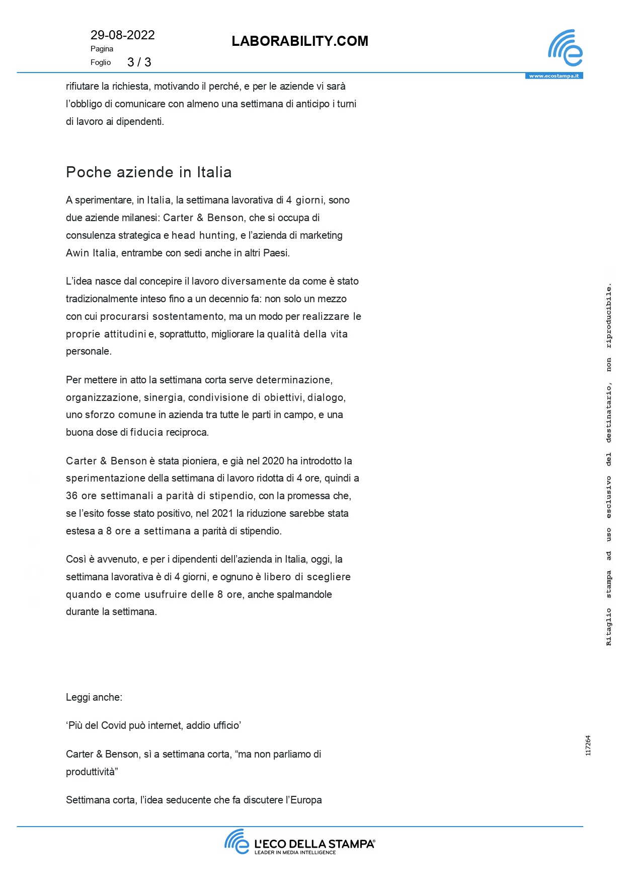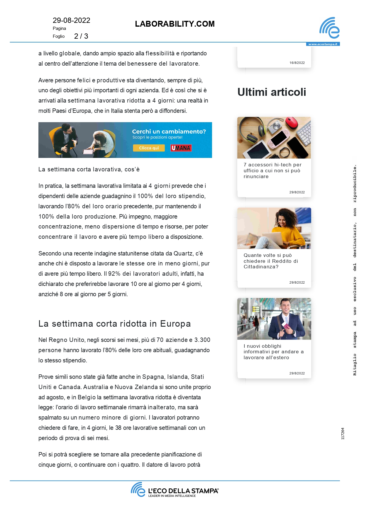 Press, HIGHLIGHT, Rassegna stampa, News, Social responsibility Laborability.com – Settimana lavorativa da 4 giorni: l’Italia ancora indietro Pubblicato il Agosto 29, 2022Settembre 4, 2022 da useradmin 29 Ago useradmin llSole24Ore.com – Gobeyond 2022: al via la sesta edizione della startup competition di Sisal per supportare l’innovazione Cambio di mindset o change management?