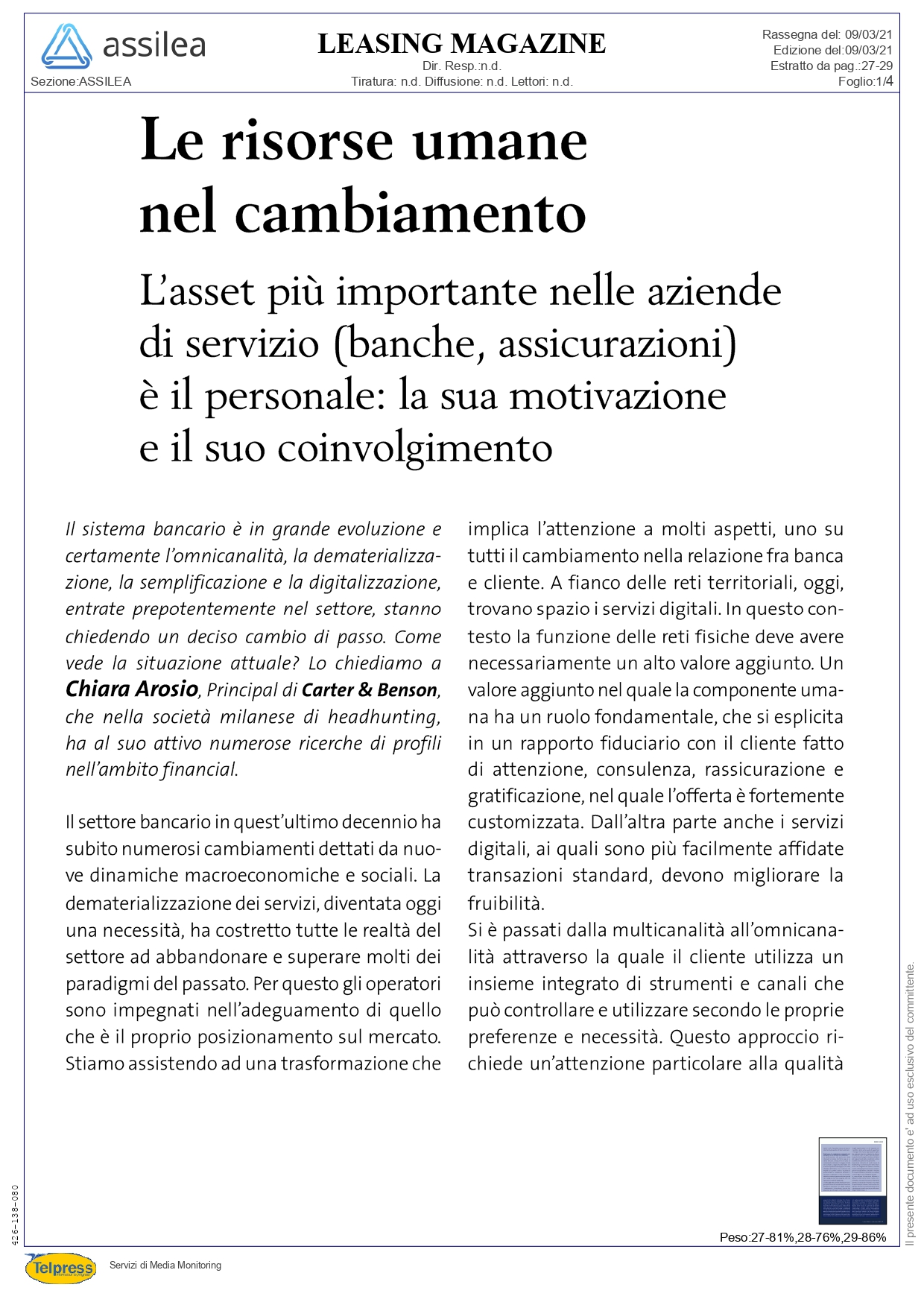 L’asset più importante nelle aziende di servizio (banche, assicurazioni) è il personale: la sua motivazione e il suo coinvolgimento.