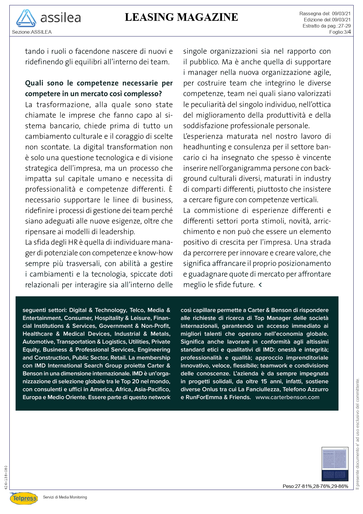 Il sistema bancario è in grande evoluzione e certamente l’omnicanalità, la dematerializzazione, la semplificazione e la digitalizzazione, entrate prepotentemente nel settore, stanno chiedendo un deciso cambio di passo. Come vede la situazione attuale? Lo chiediamo a Chiara Arosio, Principal di Carter & Benson, che nella società milanese di headhunting, ha al suo attivo numerose ricerche di profili nell’ambito financial.