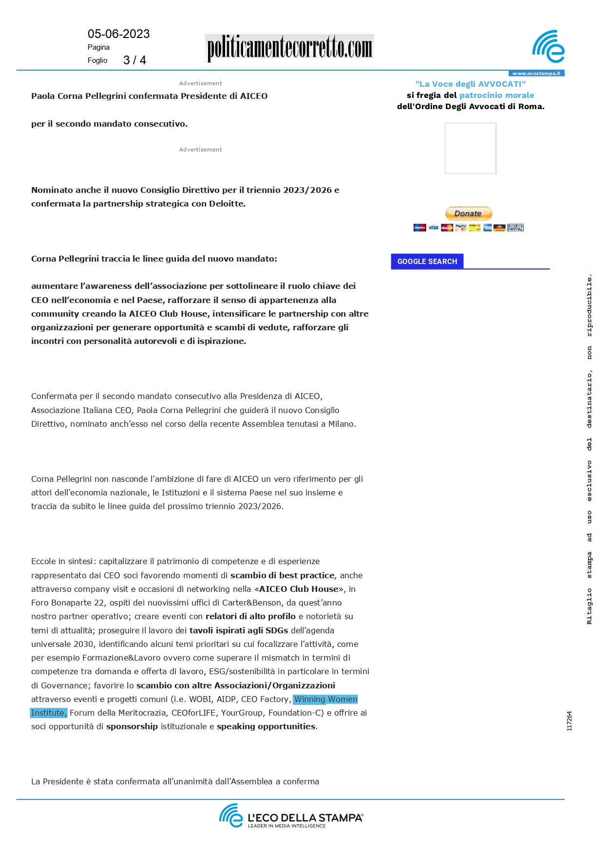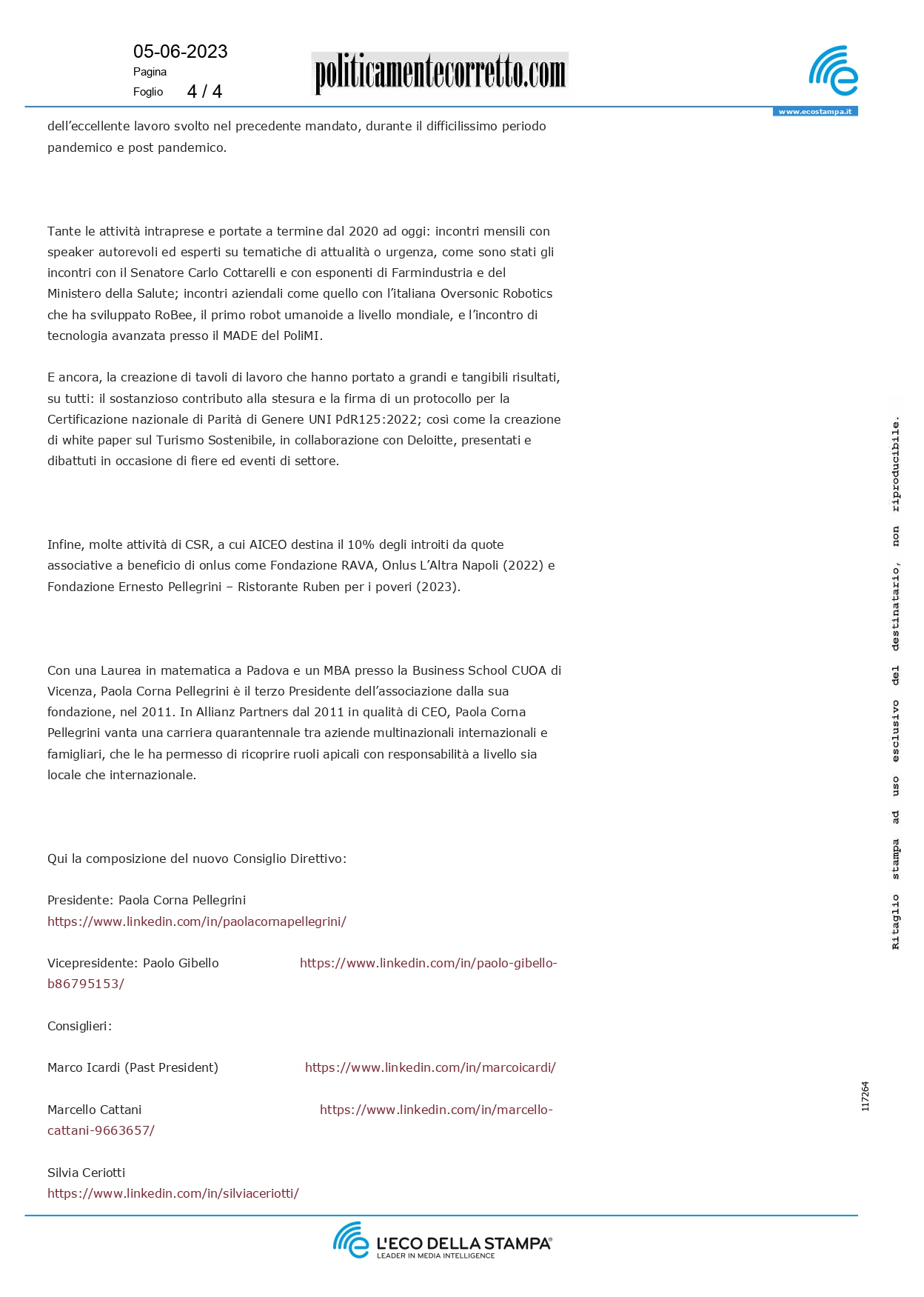 Press, HIGHLIGHT, Rassegna stampa, News, Social responsibility politicamentecorretto.com – Il ruolo chiave dei CEO per il Paese. Paola Corna PellegriniPresidente AICEO per il secondo mandato. Nominato il Direttivo e presentatoil piano 2023/2026 Pubblicato il Giugno 5, 2023Giugno 8, 2023 da useradmin 05 Giu useradmin VDJ.IT – La Four‐day workweek approda nelle aziende italiane viveretoscana.it – Montepulciano: torna il Festival dell’apprendimento continuo Maestri Fuori Classe, “Bellezza, strada maestra”