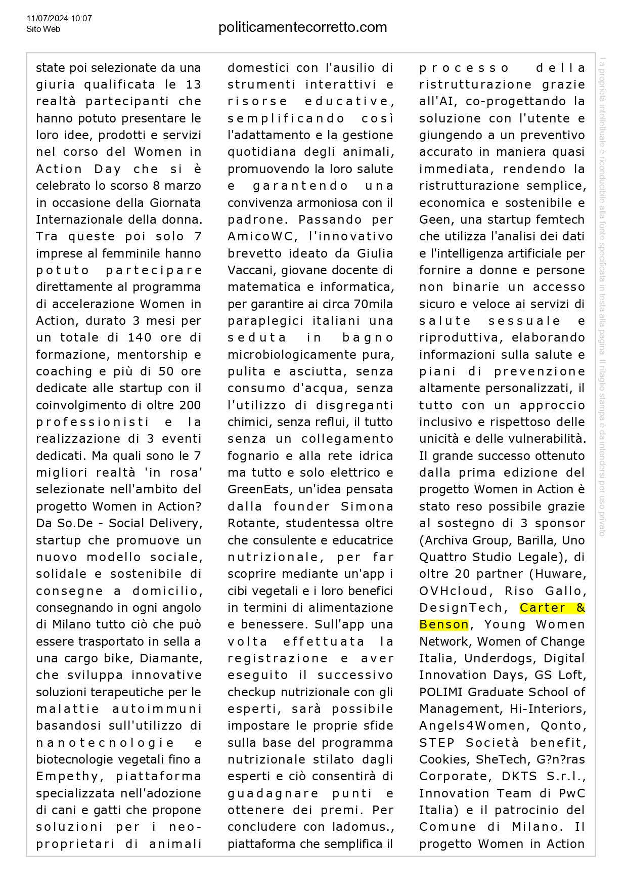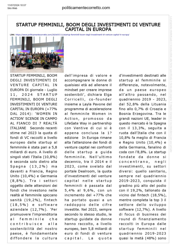 Press, HIGHLIGHT, Rassegna stampa, News politicamentecorretto.it -VSTARTUP FEMMINILI, BOOM DEGLI INVESTIMENTI DI VENTURE CAPITAL IN EUROPA Pubblicato il Luglio 12, 2024 da useradmin 12 Lug useradmin 2anews.it – Le startup femminili risultano in grande crescita: nell’ultimo decennio un incremento del +77% Human Capital Lab, il podcast di Carter & Benson – “Mentoring, reverse mentoring ed ageing nelle organizzazioni” – S.1 EP.18