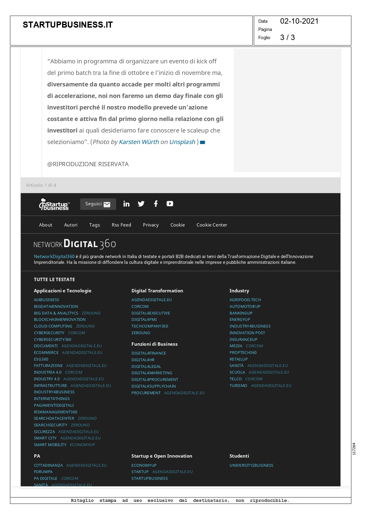 Press, HIGHLIGHT, Rassegna stampa, News startupbusiness.it – A-Road, da Growth Capital l’acceleratore per scaleup Pubblicato il Ottobre 4, 2021 da useradmin 04 Ott Leggi l’articolo sul sito useradmin venetoeconomia.it – Smart working e formazione nel post-Covid, torna «Maps for Future», il festival di Niuko INDUSTRIAVICENTINA.IT – Settimana corta e remote working dall’estero per attrarre i talenti: nuovi modelli organizzativi
