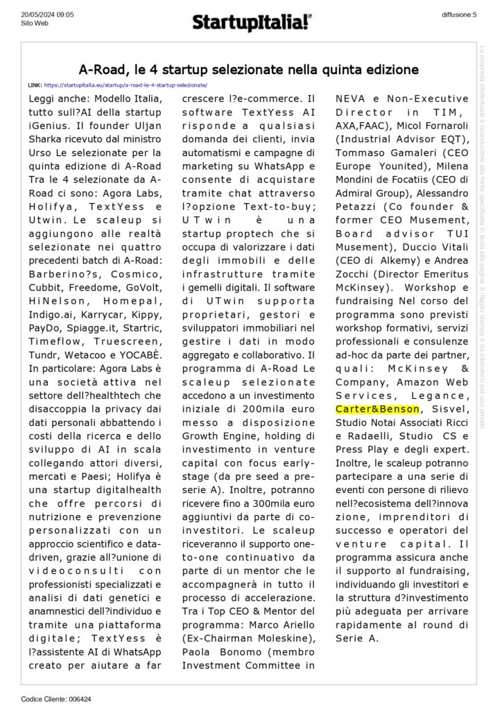 Press, HIGHLIGHT, Rassegna stampa, News Startupitalia! – A-Road, le 4 startup selezionate nella quinta edizione Pubblicato il Maggio 22, 2024 da useradmin 22 Mag useradmin allevents.it – Welfare pubblico non riscosso Gliscomunicati.it – Regno Unito: parte il progetto pilota di riduzione della settimana lavorativa a 4 giorni